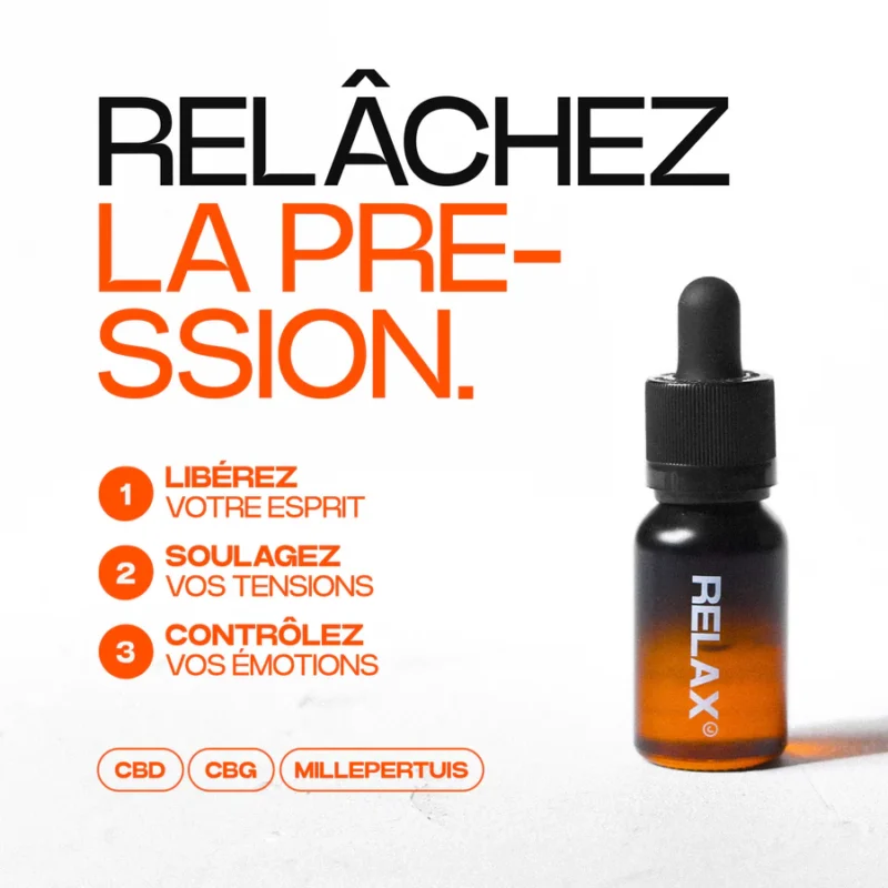 RELAX – HUILE CBD ENRICHIE EN CBG + MILLEPERTUIS